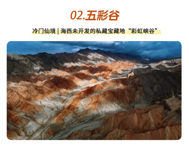 旅程的最后一天,我们迎来了一处令人惊艳的山谷【五彩谷】。这片被五色土赋予神秘色彩的山谷,像是一副气势磅礴的油画,更像被打开了异世界的大门。浓烈的阳光让颜色层次分明,肉眼可见的有鲜艳的橙色,细腻的银白,还有远处的灰色等多元色彩的层叠。独特的地理和气候环境造就了这里的鬼斧神工,绝对能带给你前所未有的视觉冲击。