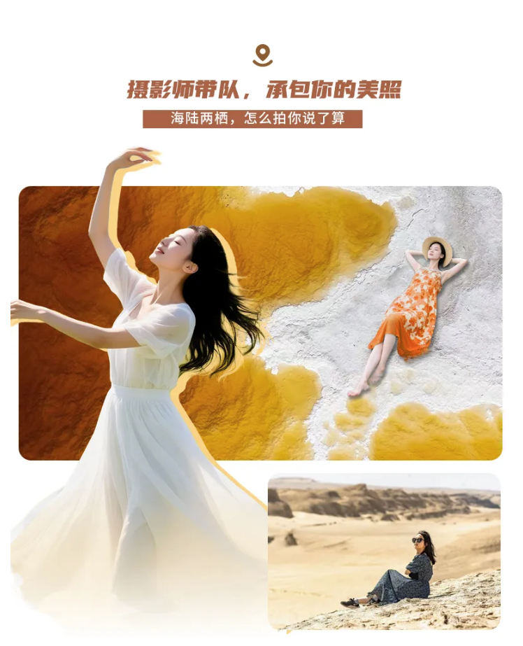 【领队】团队人数10人以下(含10人)时司机兼领队(因蜜蜡湖及雅丹长城需换乘硬派越野车进入,司机兼领队无法陪同游览);10人以上时安排优秀摄影师全程为您服务;