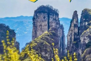 春色弥漫着太行花香沐浴着峡谷连翘花开满了峡谷沟壑