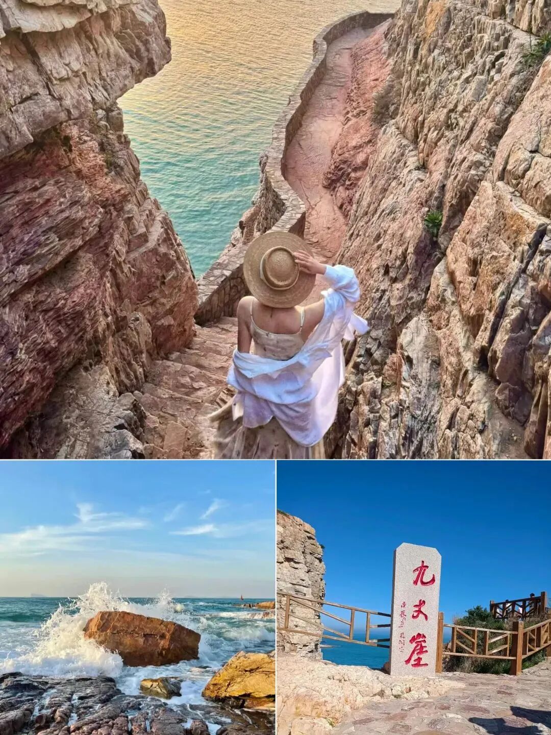 长岛最壮观的海蚀地貌,崖壁陡峭如削,高达九丈。崖下怪石嶙峋,海浪拍岸,气势磅礴。夕阳西下时,金光洒落崖壁,壮美非凡,是摄影爱好者的天堂。