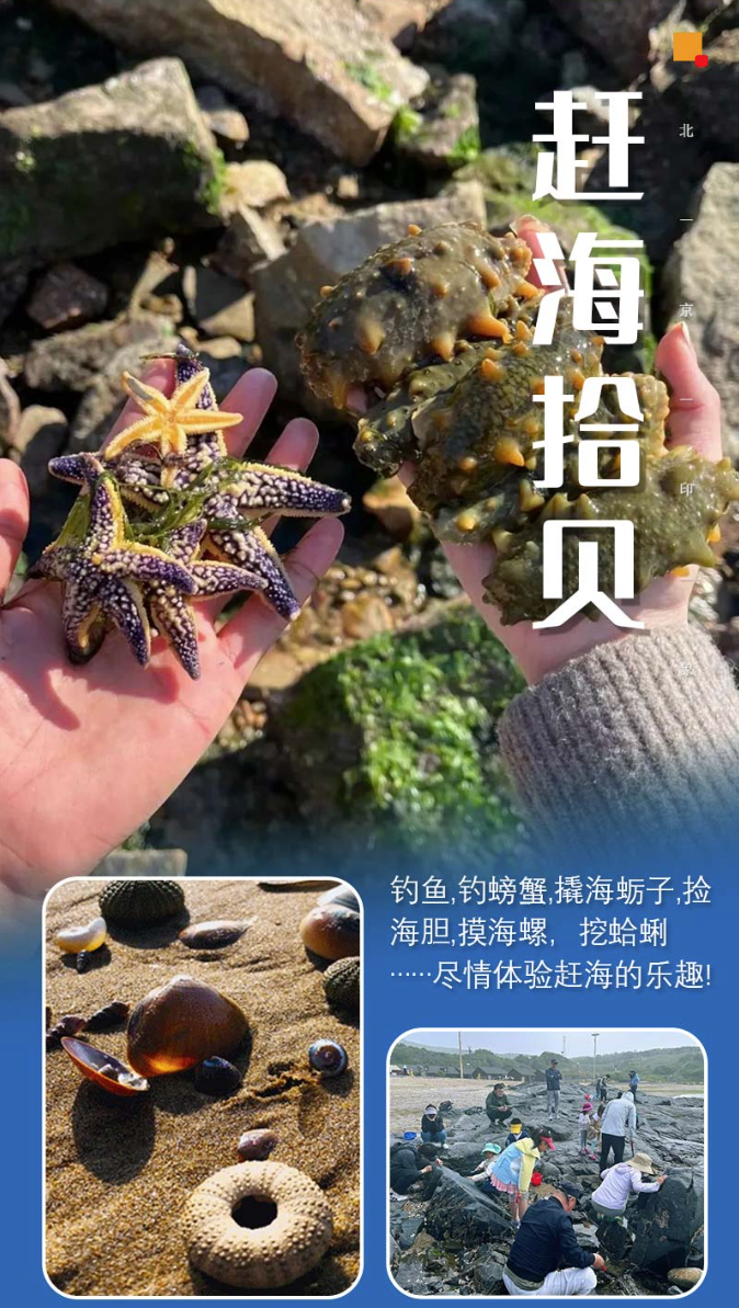 - 晚上|自由活动,大家可以自由去海滨浴场活动,放烟花,喝啤酒,K歌开联欢会,也可以渔家院结伴打牌,各小组互动、游戏、累了自然睡!