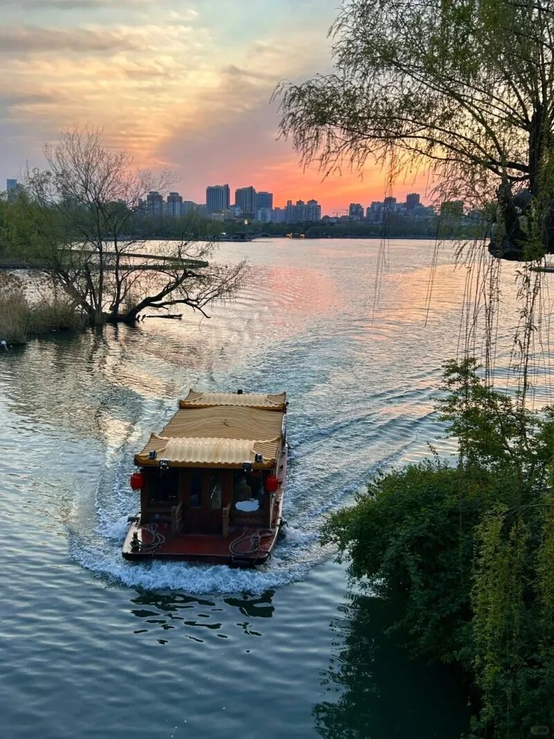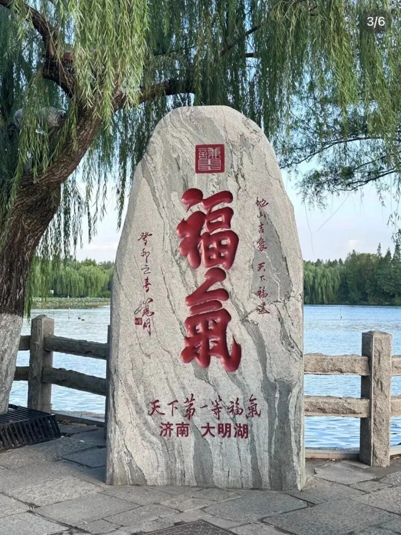 2)或前往【大明湖】,还记得大明湖畔的夏雨荷吗?是济南三大名胜之一,繁华都市中天然湖泊是泉城重要风景名胜和开放窗口,闻名中外的旅游胜地,素有“泉城明珠”的美誉。可乘坐公共交通:41路/k109路等等公交到大明湖站下车,或者步行走到大明湖公园。在大明湖我们可以坐船、看湖畔垂柳、漫步湖边享受夕阳西下。