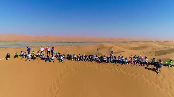 腾格里沙漠为中国式大沙漠之一,徒步过程中可见一望无边的大漠风光,沙漠湖泊或如中国地图,或如月牙一般,甚是神奇。