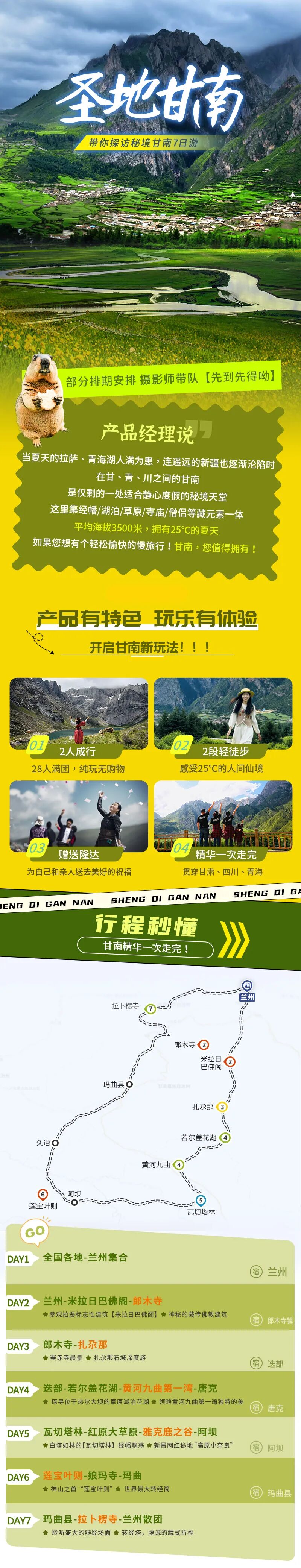 行程亮点:4-10月多期 -圣地甘南休闲7日 【拉卜楞寺-扎尕那-郎木寺-黄河九曲-若尔盖花湖-莲宝叶则-红原草原-米拉日巴佛阁】7日休闲游