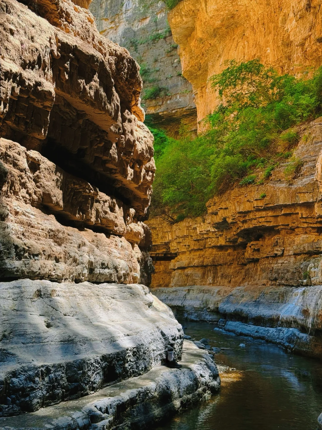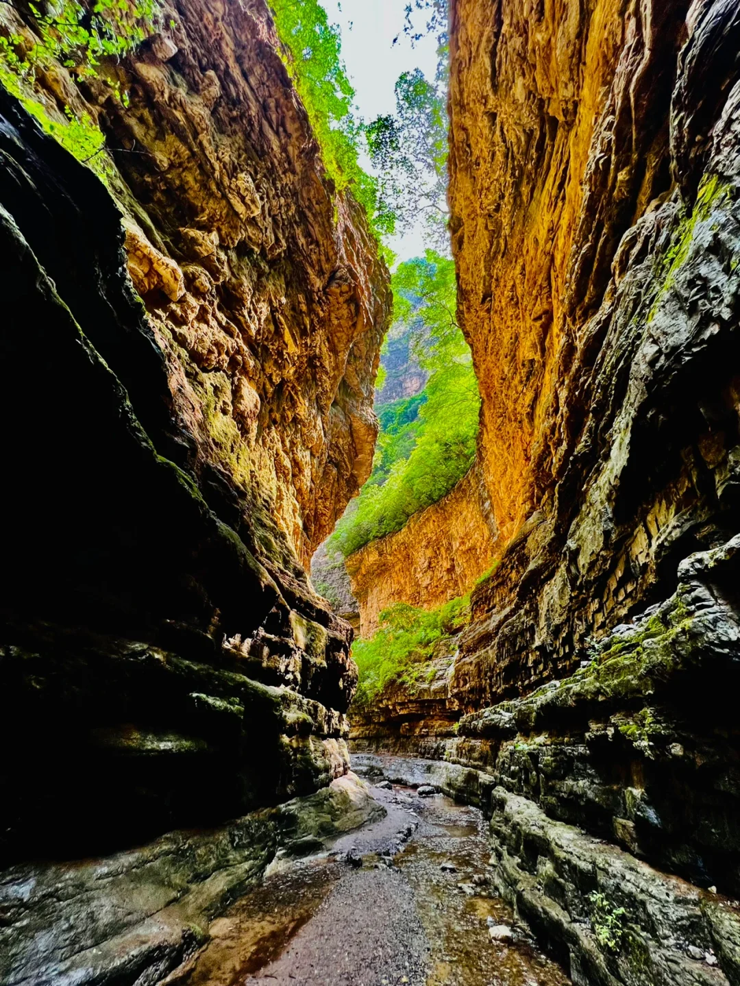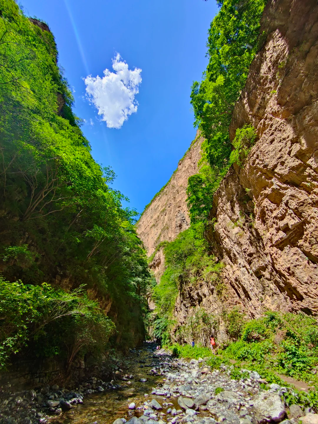 抬头是若隐若现的蓝天和绿树置身谷底