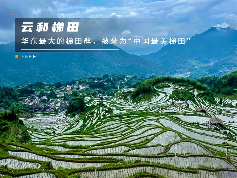 云和梯田跨越高山、丘陵、谷地三个地质景观带,最多有700多层,是华东最大的梯田群,被誉为“中国最美梯田”。整个梯田景区面积巨大,分为白银谷和九曲云环两大游览区域。白银谷更受游客和摄影爱好者亲睐。
