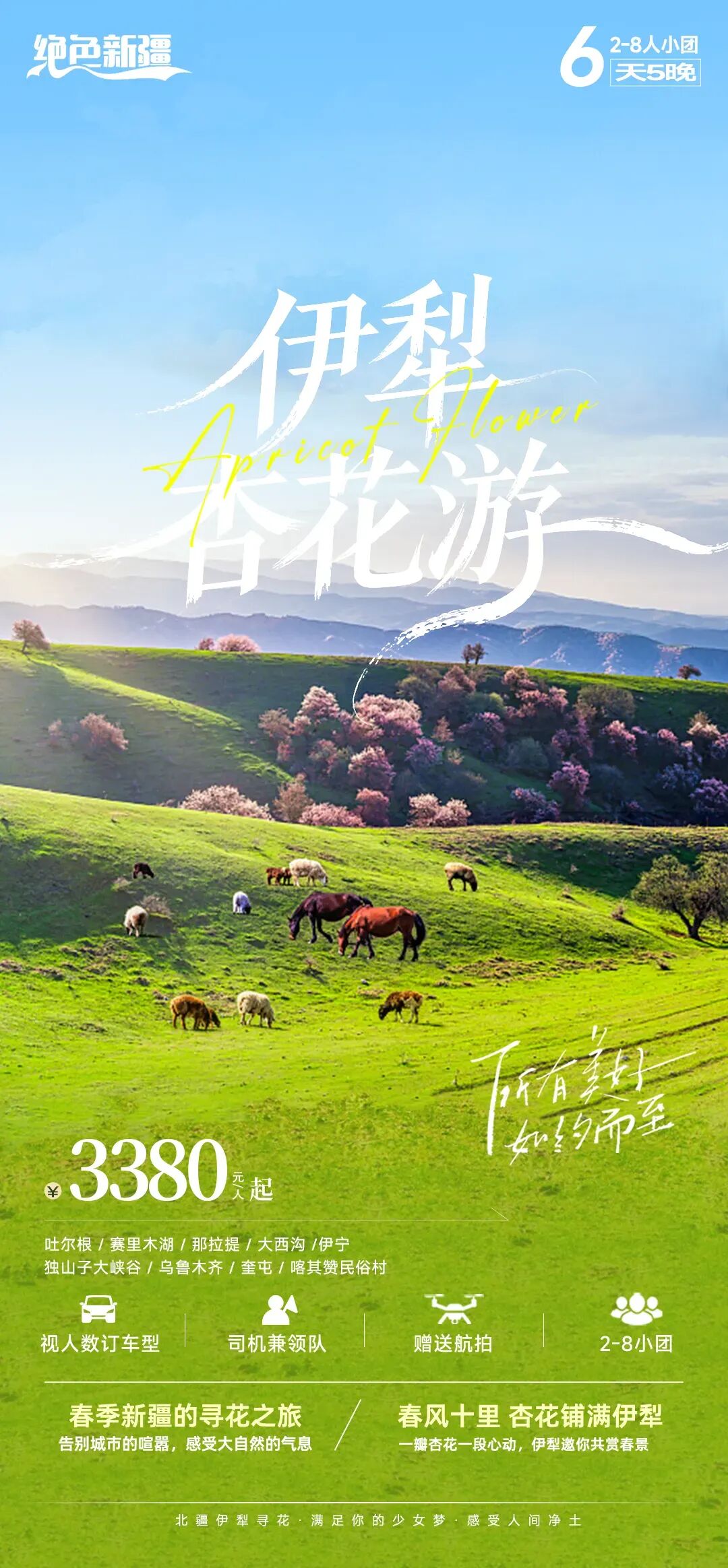 【花期说明】伊犁杏花一般在清明前后开放,受气温及天气变化影响较大,每年花期不固定,无法确保每年最佳花期,不同海拔高度不同地方花开时间都不一样,我司会根据花开情况,灵活调整拍摄行程,最大限度进行摄影创作,花期短暂,请平常心看待,届时请配合领队工作,敬请谅解!
