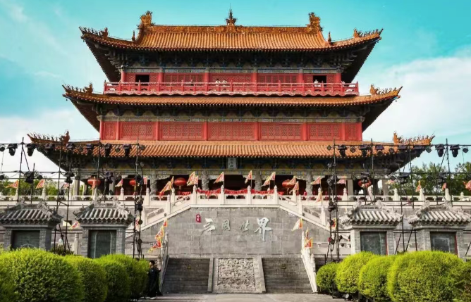 曹魏古城坐落于许昌市中心,古城以三国时期曹魏都城许昌为蓝本,巧妙地将历史文化与现代建筑艺术相结合,再现了 1800 年前曹魏都城的繁华盛景。