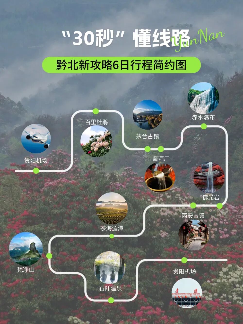 行程亮点:贵州黔北-赤水瀑布-茅台古镇-百里杜鹃-梵净山-石阡温泉