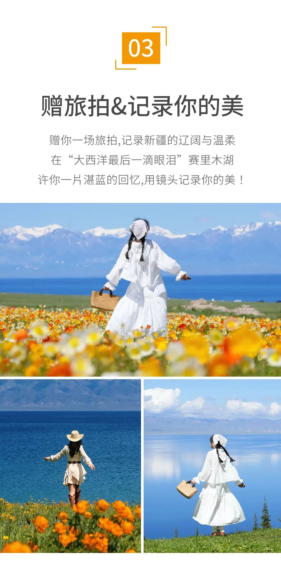 4.赛里木湖定点旅拍(不含妆造,每人3-4张简修照)5.集合日赠接机。