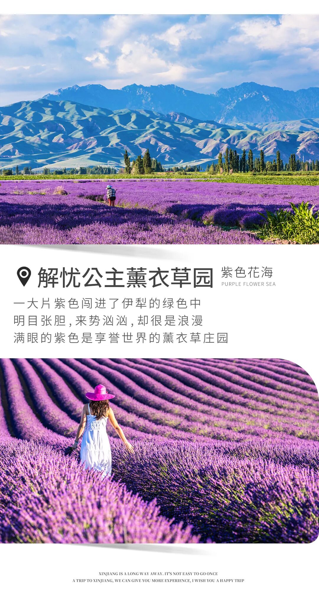 1.解忧公主薰衣草园的薰衣草是不收割的,ZUI佳观赏季节在6-7月份,8月份只能参观博物馆;景区内有部分薰衣草制品销售,我们的目的是欣赏薰衣草,而并非消费,自由选择。