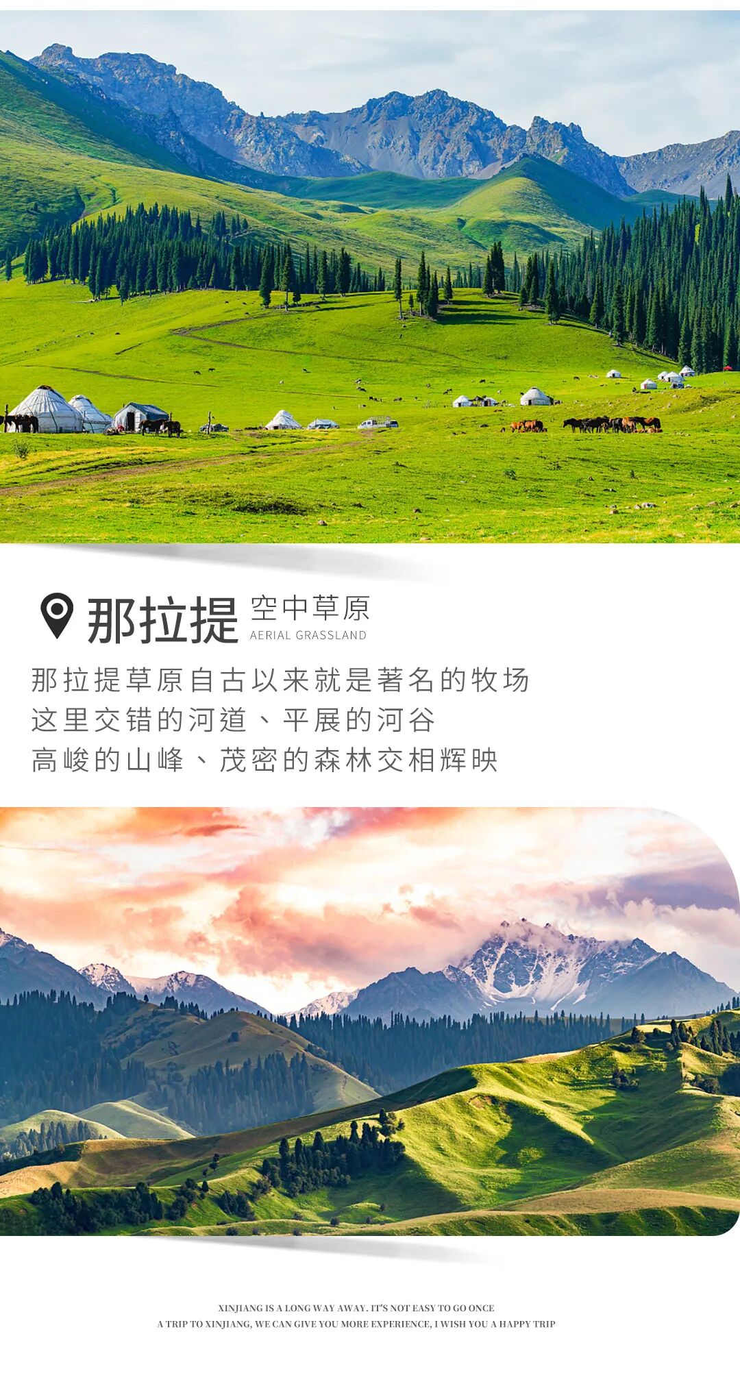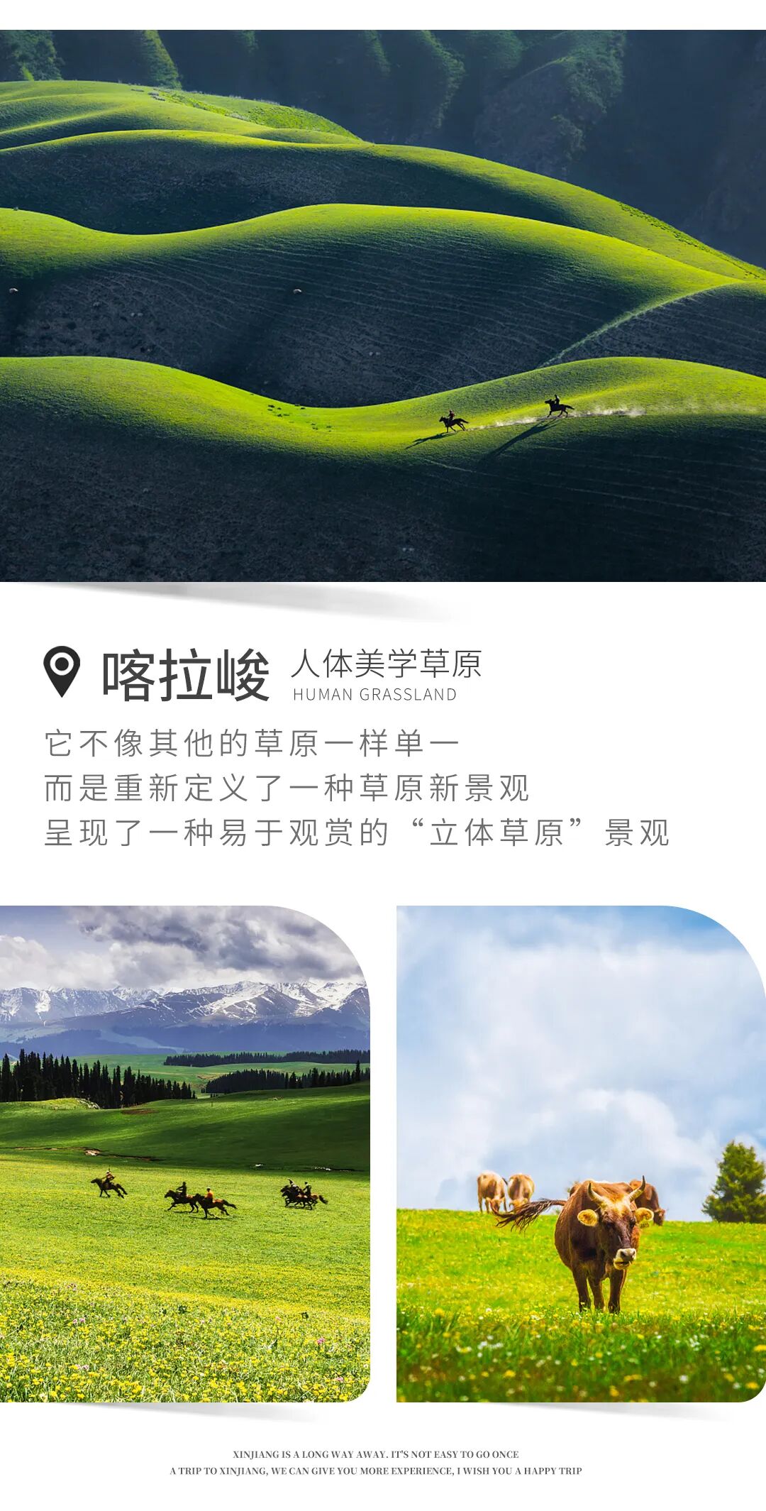 早餐后约8点半出发前往喀拉峻景区,行车约1小时抵达景区。今天我们买的是喀拉峻全景游套票,包含了游船,缆车,东喀拉峻+西喀拉峻,鳄鱼湾和各个喀拉峻景区有名的小景点。所以我们今天 在喀拉峻游玩的时间可以达到7个小时。“喀拉峻”是哈萨克语,意为“黑色苍茫的草原”。它不像其他的草原一样单一,定义了一种草原新景观,呈现了一种易于观赏的“立体草原”景观,俗称“人体山“。位于天山山腰的喀拉峻大草原,绵延无际,成群牛羊和点点毡房如同绿毯上的花朵,远处天山雪峰横亘。这个季节,在喀拉峻草原如同步入鲜花的海洋,各种野花恰似点点繁星,漫山遍野,望不到尽头。我们适时前往那拉提入住(车程约2小时)。